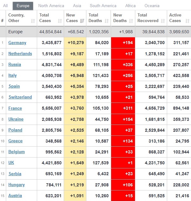 COVID-19 у Європі: змінилися лідери за кількістю нових випадків