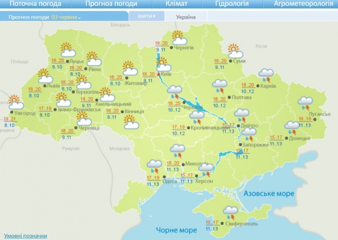 У Приазов'ї, на Луганщині, в Криму сильні дощі можуть чергуватися із проясненнями".