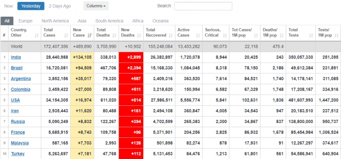 Деталі: Зокрема, в Індії – 134 105, в Бразилії – 94 509, в Аргентині – 35 017.