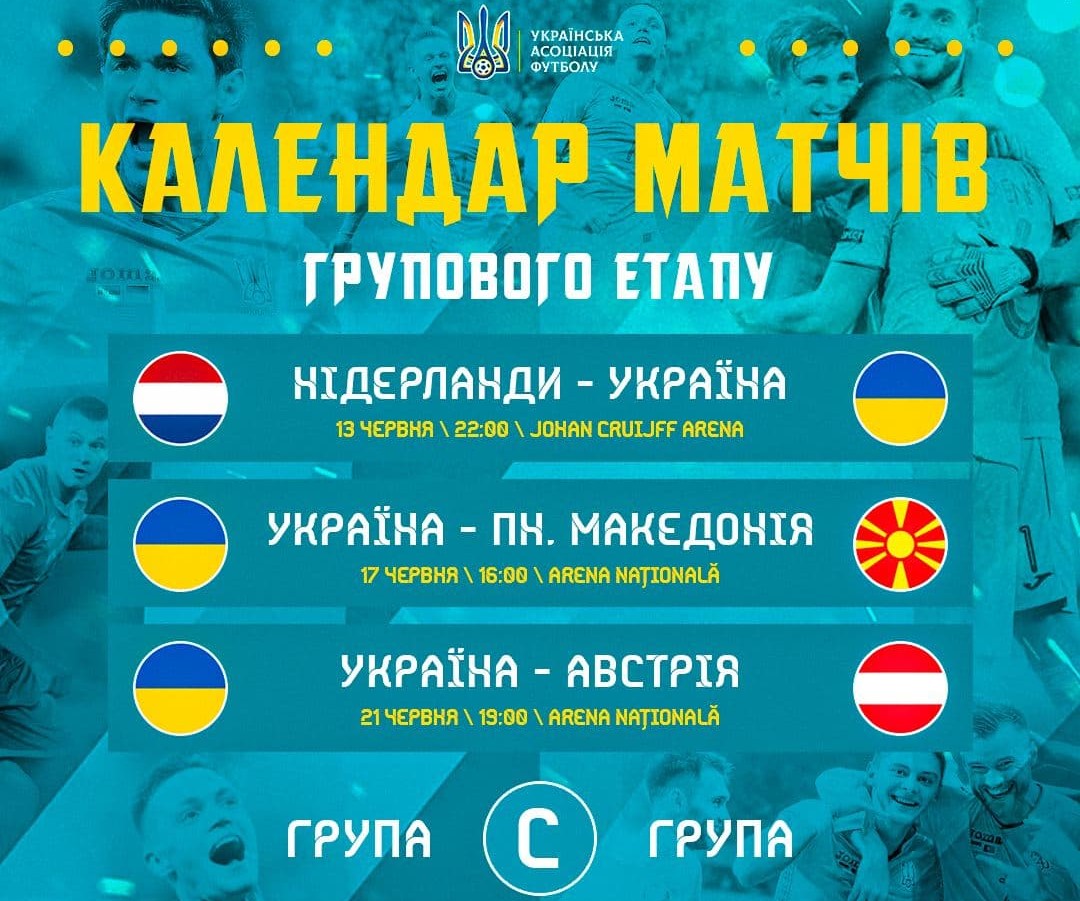 Суперниками українців у квартеті "С" будуть Нідерланди, Австрія та Північна Македонія.