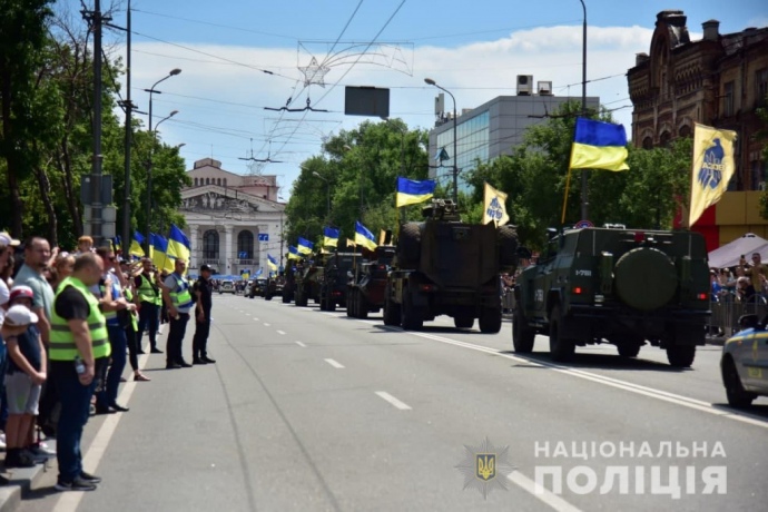 Деталі: Центральним проспектом до Театральної площі рушила колонна військової техніки та піша колона представників силових структур: працівники Нацполіції України, полку "Азов", військовослужбовці, рятівники та курсанти ДонДУВС МВС України.