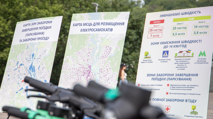 - запроваджуються зони, де буде заборонено залишати самокати (історичний центр, зони навколо дипломатичних установ, окремих державних органів, правоохоронних органів, а також суб’єктів, які ведуть свою діяльність у галузі національної безпеки і оборони),