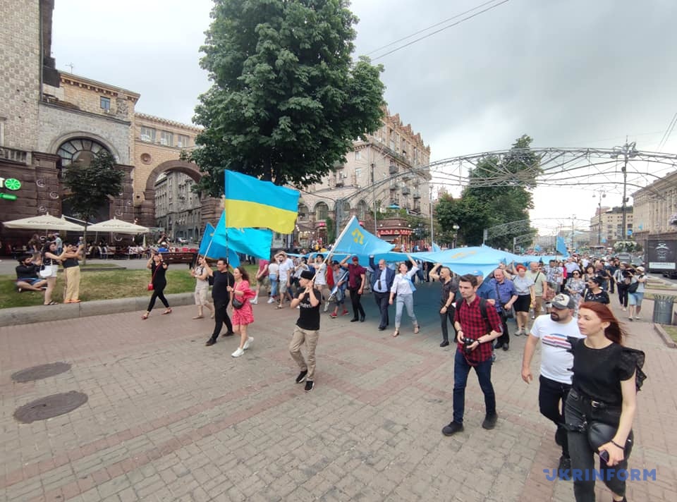 У Києві вулицею Хрещатик декілька сотень людей влаштували ходу на честь Дня кримськотатарського прапора.