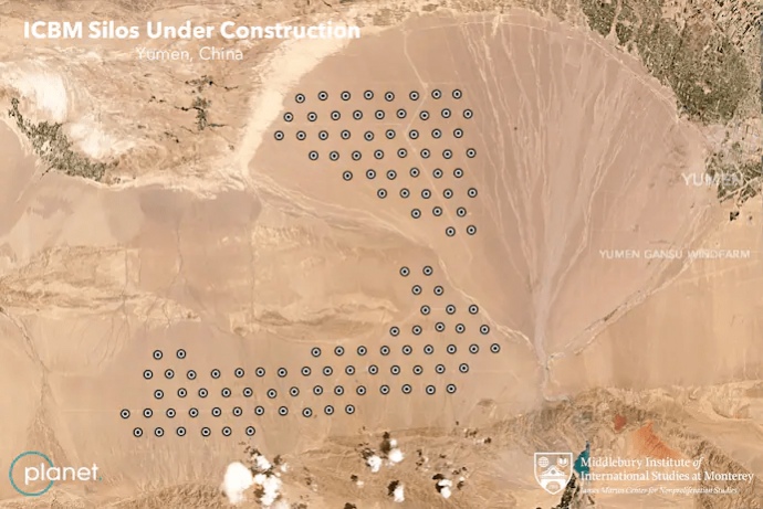Китай почав будівництво 119 нових шахт для міжконтинентальних балістичних ракет в пустелі недалеко від міста Юмень, в провінції Ганьсу.