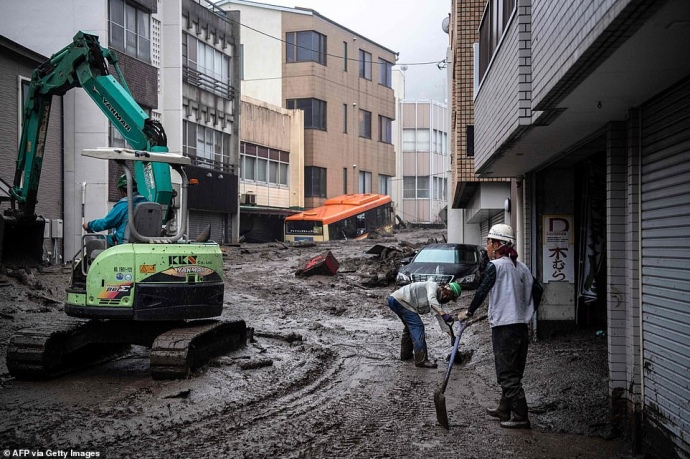 Щонайменше двадцять людей зникли безвісти в наслідок зсуву в Японії, який стався після потужної зливи.