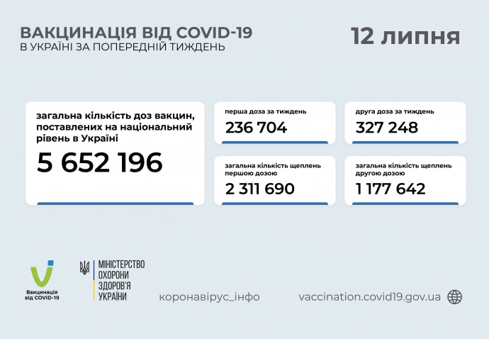 Деталі: Упродовж 7 днів першу дозу вакцини отримали 236 704 особи, другу – 327 248.