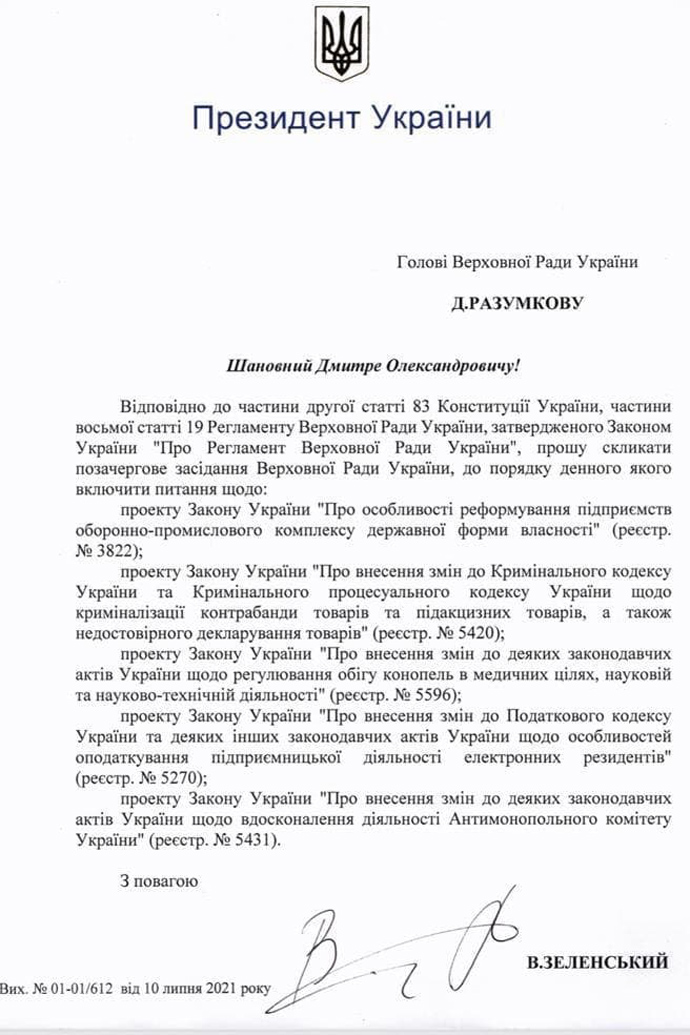 Зеленський скликав позачергове засідання ВР: розглянуть легалізацію канабісу
