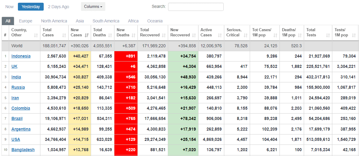 Деталі: Зокрема, в Індонезії – 40 427 випадків, в Британії – 34 471, в Індії – 30 827.