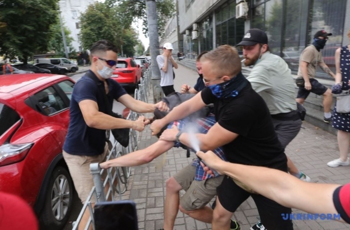 Між ними виникла словесна перепалка, після якої сторони закидали один одного яйцями та розпилили газовий балончик.