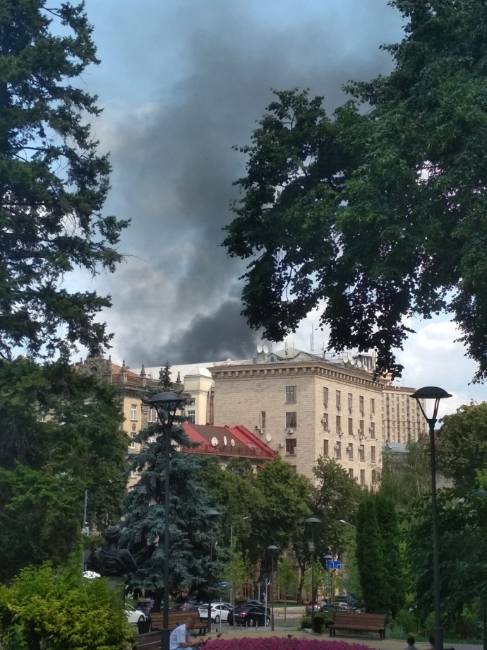 Деталі: Повідомлення про пожежу на Хрещатику в Печерському районі столиці надійшло до ДСНС о 14:20.
