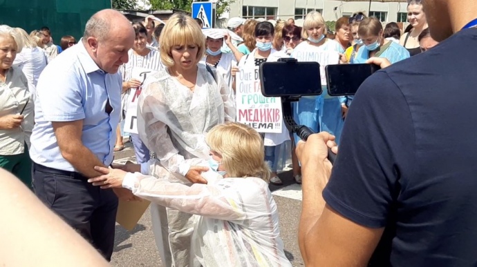 Що передувало: Перша акція протесту медиків у Валках відбулася 17 червня. 18 червня працівникам виплатили травневий аванс.