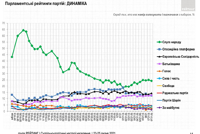 Дослівно: "Парламентський рейтинг очолює партія "Слуга народу", яку готові підтримати 24,1% серед тих, хто буде голосувати та визначився із вибором".