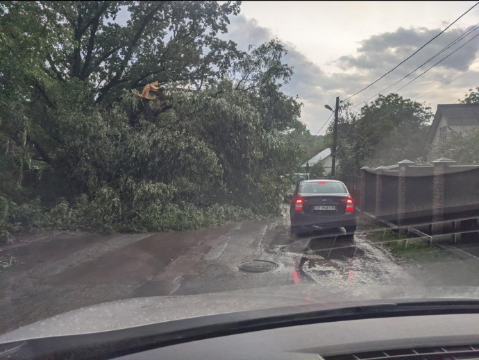На Чернівці налетіла злива: затоплені та без світла вулиці, повалені дерева