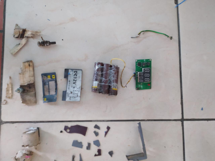 У ході невідкладних обшуків за місцем проживання чоловіка правоохоронці виявили частини саморобного вибухового пристрою, пакети з порошкоподібною речовиною, схожою на вибухову, засіб для заглушування GSM сигналу, товарні накладні "Нової Пошти", чорнові записи тощо.