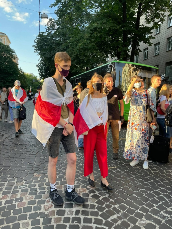Деталі: Під будівлею зібралось близько 200 осіб. Учасники скандують "Живе Білорусь" та "Герої не вмирають, допоки їх пам’ятають".
