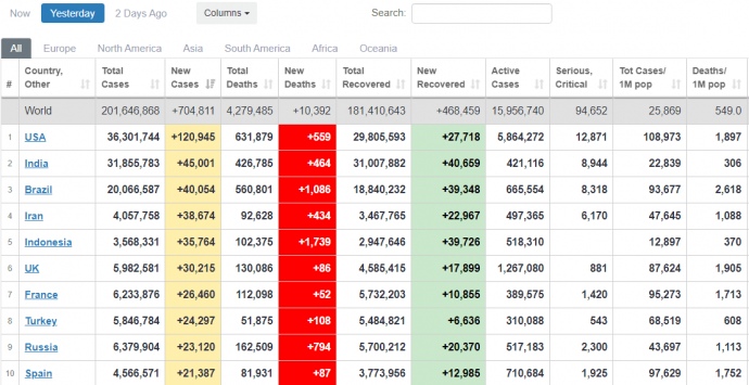 За добу 4 серпня у світі виявили 704 811 нових COVID-випадків. Востаннє більше було 13 травня, коли зафіксували більше 746 тисяч випадків.
