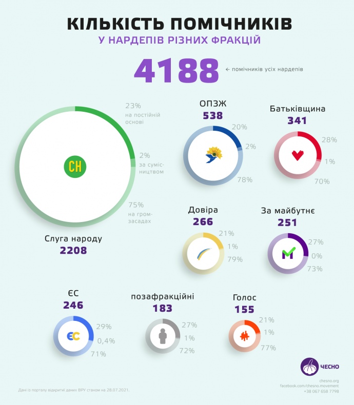 Деталі: Найбільше помічників у найбільшій фракції "Слуга народу".