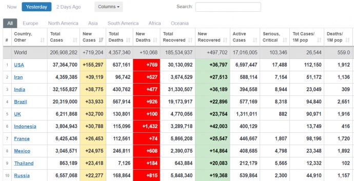 За добу 12 серпня у світі виявили 719 204 нові випадки COVID-19.