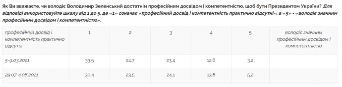 Схоже опитування проводили у березні. З того часу думка українців змінилася на користь Зеленського - індекс досвіду та компетентності зріс з мінус 42,4 до мінус 34,9 (цей та наступні індекси розраховувалися як різниця позитивних і негативних оцінок).
