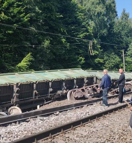 На Львівській залізниці стався схід 13 вагонів вантажного поїзда "Клепарів – Батьово", що перевозив щебінь та залізну руду.