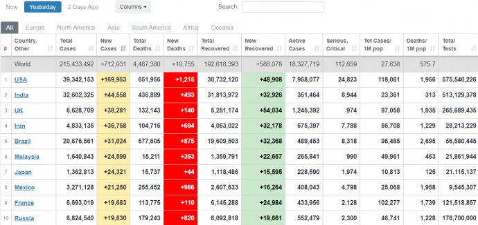 За добу 25 серпня у світі зафіксували 712 031 випадок COVID-19.