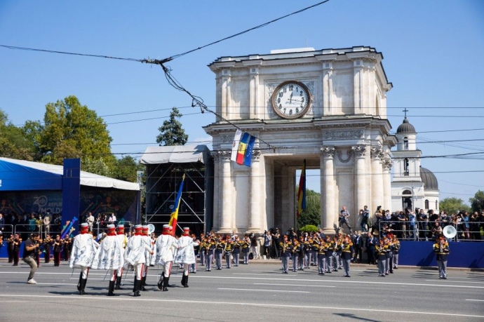 Глави держав переглянули військовий парад на площі Великих Національних Зборів. Після цього президенти пройшлися центральною вулицею Кишинева.