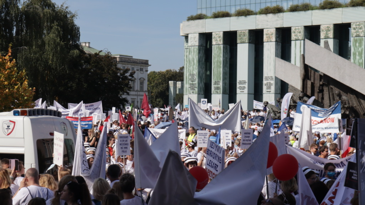 У Варшаві проходить акція протесту за участі тисяч медиків, які вимагають від уряду покращити умови праці.