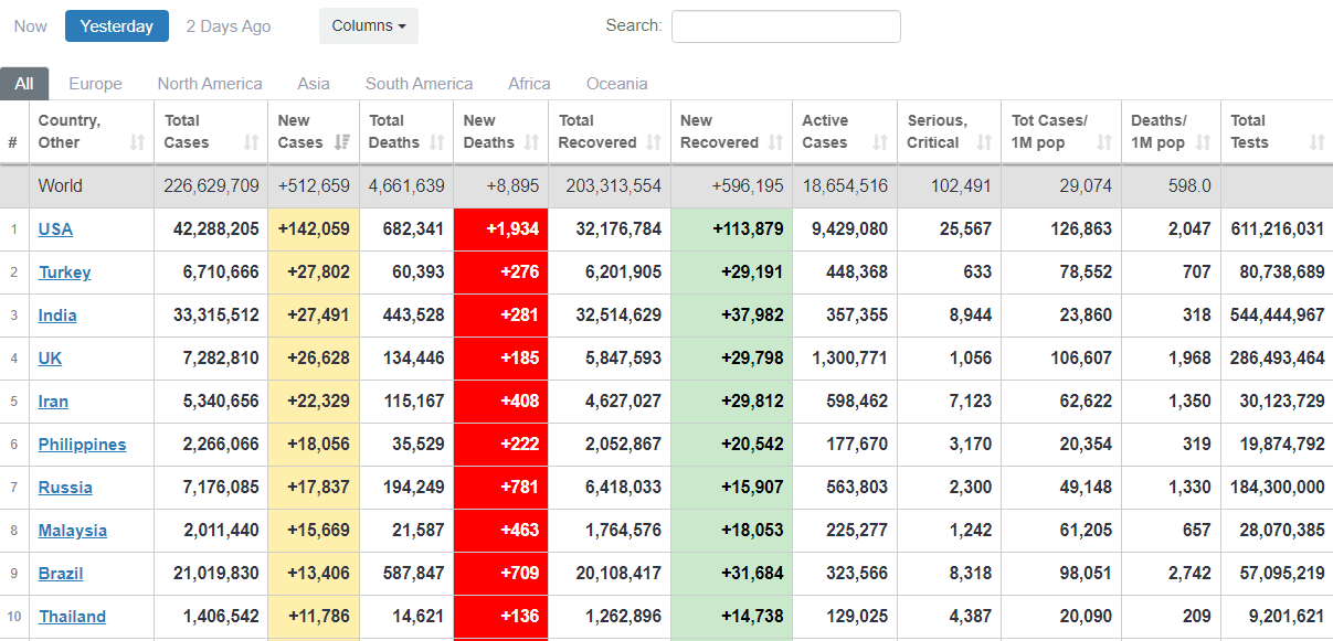 За добу 13 вересня у світі виявили 512 659 нових випадків COVID-19.