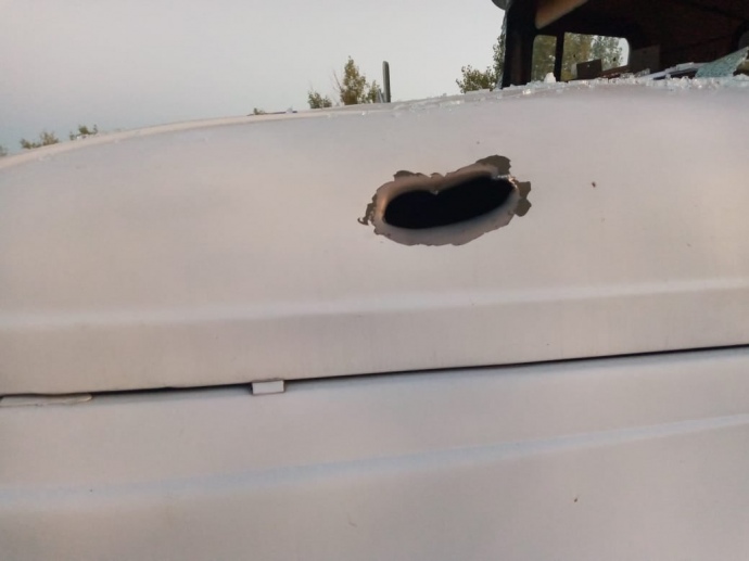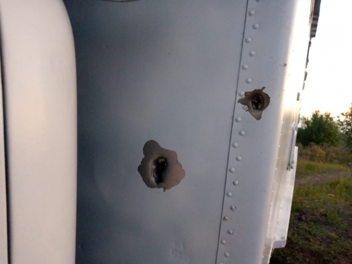 Деталі: Внаслідок обстрілу зафіксували осколкові ушкодження кабіни, кунга і коліс автомобіля, а також розриви на прилеглій території.