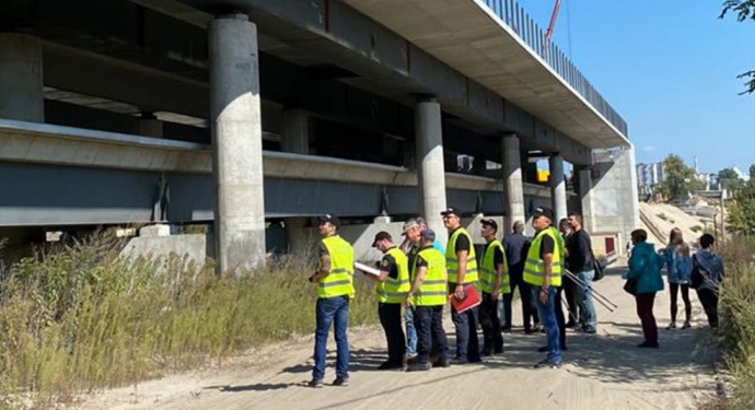 Правоохоронці разом із експертами оглянули будівництво Подільського мосту через справу про службову недбалість під час будівництва мостового переходу через річку Дніпро та привласнення коштів.