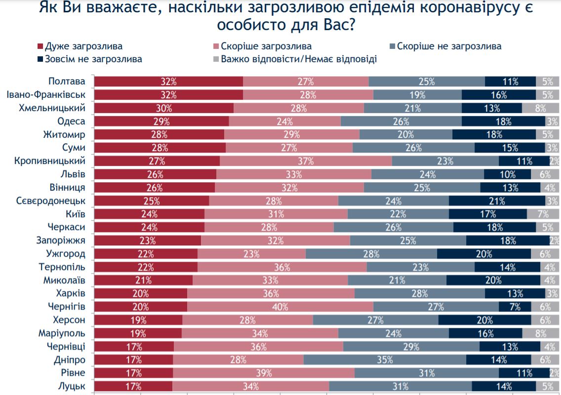 Крім того, респонденти у декількох містах вважають, що пандемія коронавірусу не така загрозлива для них особисто. Зокрема, в Ужгороді, Дніпрі, Херсоні та Луцьку.