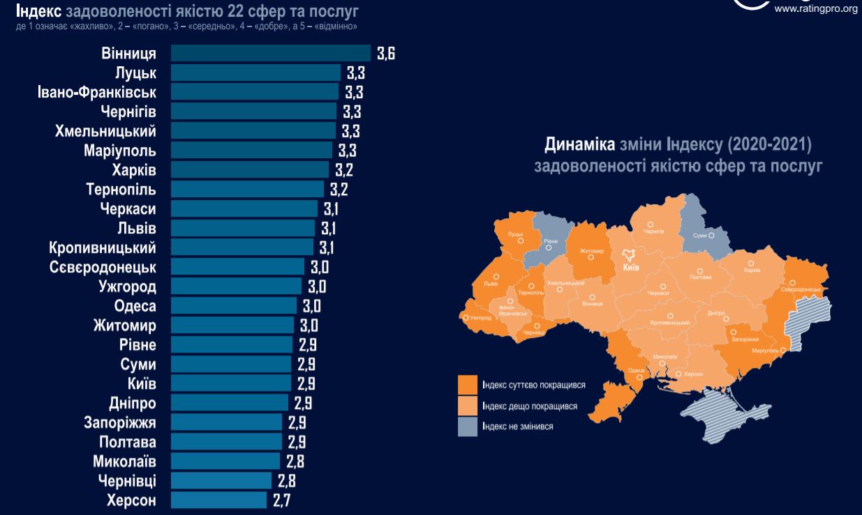 Деталі: Найбільше в Україні задоволені якістю послуг мешканці Вінниці - 3,6 бала із 5.