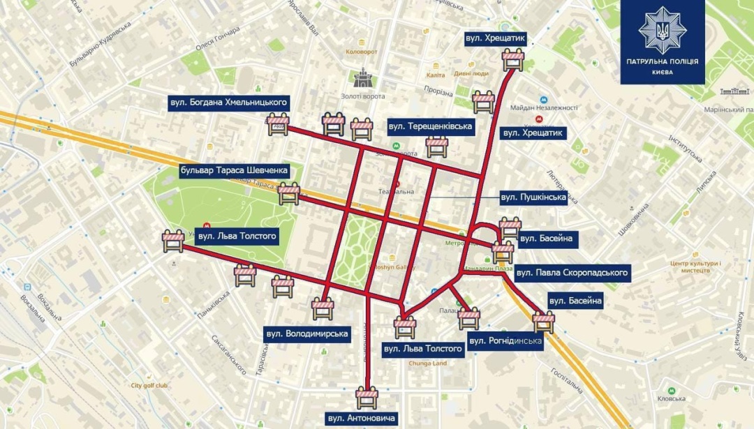 Крім цього, обмежено рух на частинах вулиць, прилеглих до маршруту маршу, зачинені на вхід та вихід станції метрополітену "Площа Льва Толстого", "Палац спорту" та "Театральна" (працює, як пересадочний вузол).