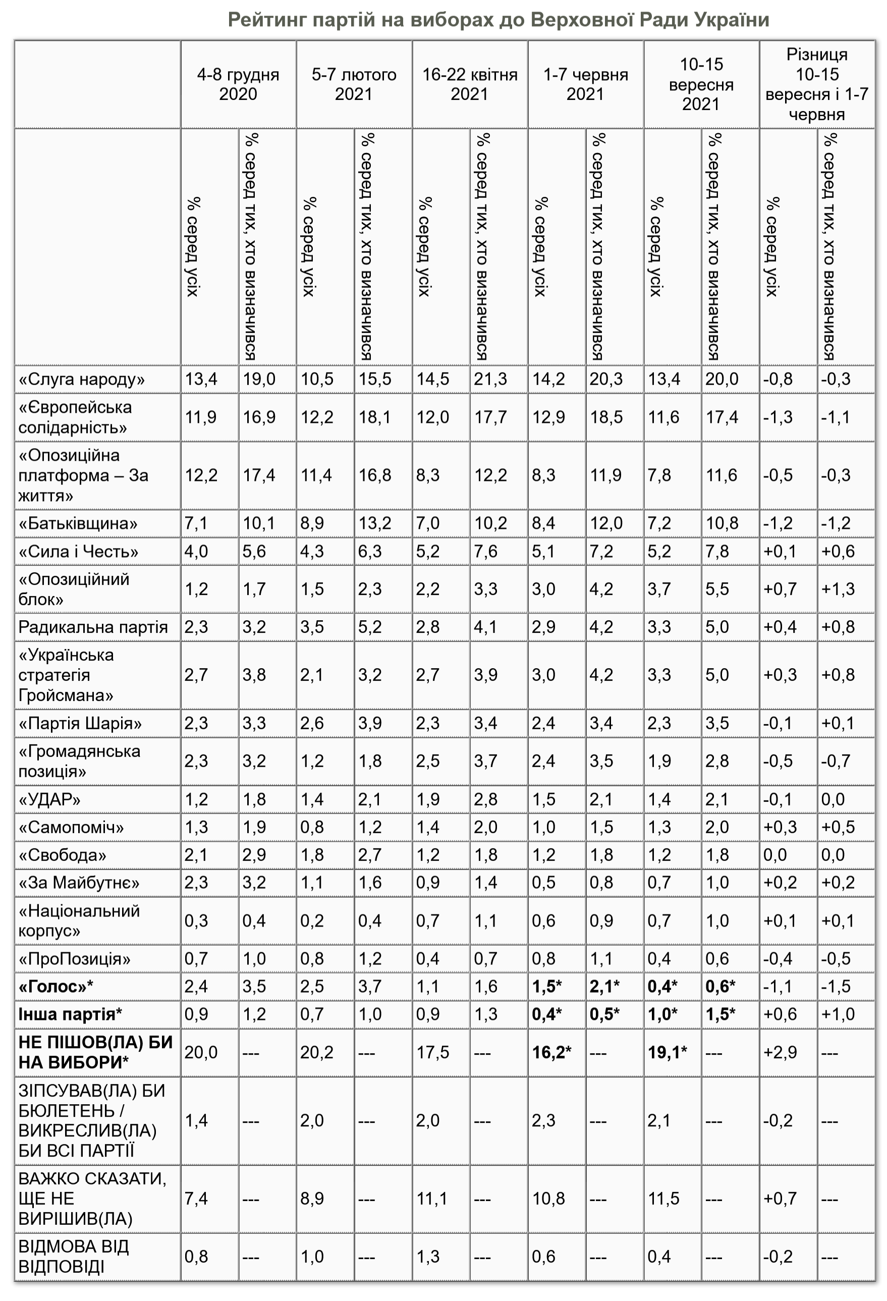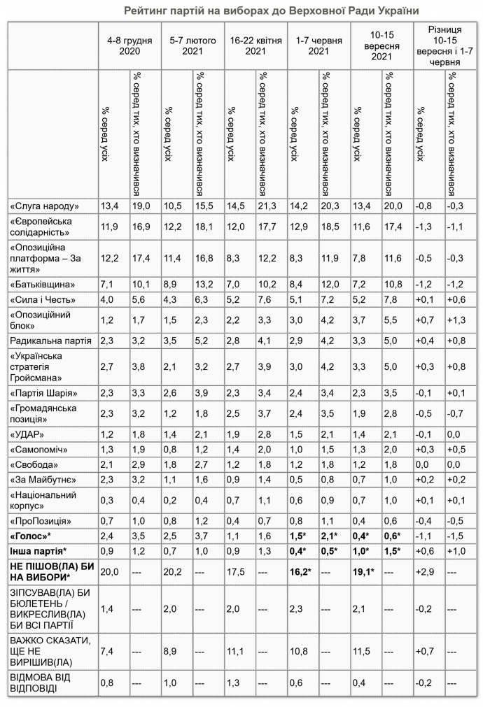 Єдиний виняток – партія "Голос", чия підтримка знизилася з 2,1% до 0,6%.