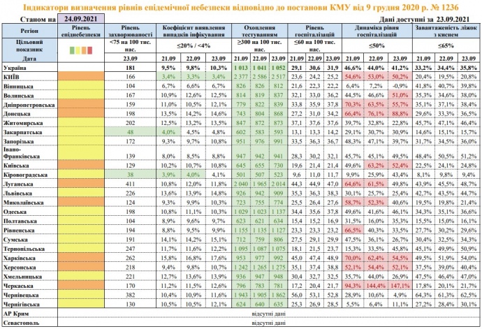Слід зазначити, що ще 21 вересня всі регіони України відповідали показникам "зеленого" рівня.