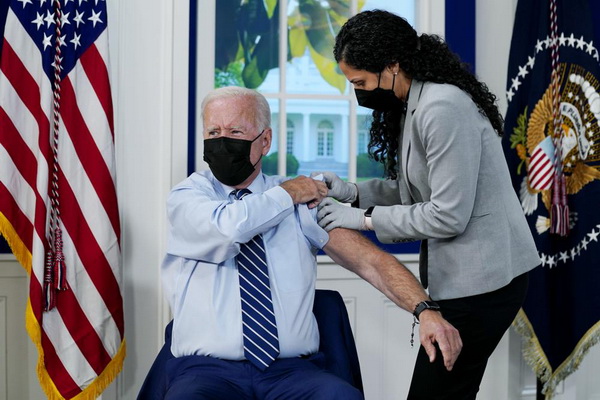 "Найголовніше, що нам потрібно зробити, - це зробити щеплення ще більшій кількості людей", - сказав глава Білого дому, перш ніж медики дали йому третю дозу.