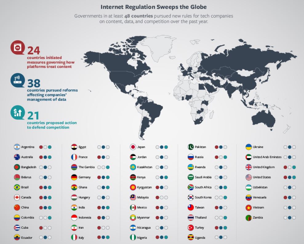 Умови для захисту прав людини в Інтернеті в цьому році погіршилися в 30 країнах і тільки 18 країнах покращилися. Найбільше зниження відбулося в М'янмі, Білорусі і Уганді.