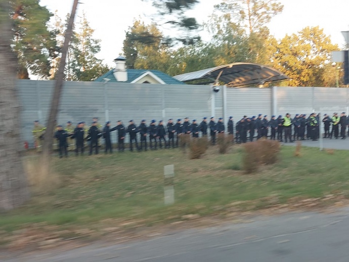 На виїзді в резиденцію, уздовж паркану, вишикувалися нацгвардійці та поліція. Правоохоронців щонайменше дві сотні.