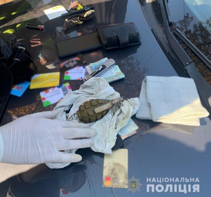 Поліція також провела 4 обшуки вдома у злочинців, вилучили флакони та блістери з різними сильнодіючими лікарськими препаратами, а також "предмет, схожий на бойову гранату".