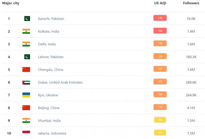 Деталі: Згідно з інформацією, індекс Києва складає 110 при нормі 50. Місто перебуває на сьомому місці за забрудненістю.