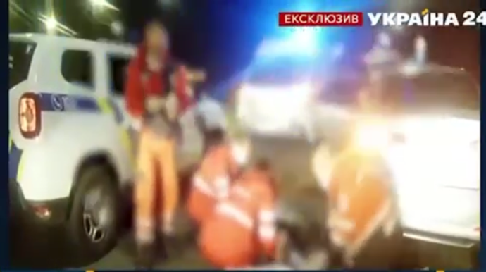 Спочатку Полякова намагаються реанімувати поліцейські, а пізніше приїжджає карета "швидкої".