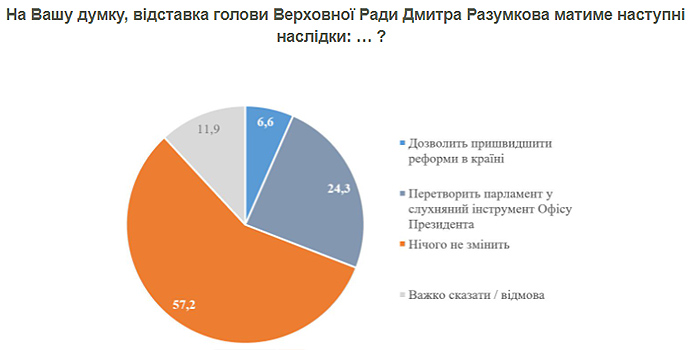 Деталі: Більшість респондентів (57,2%) вважають, що відставка Разумкова нічого не змінить.