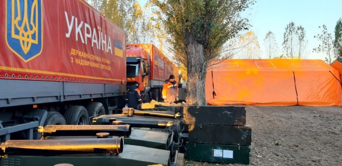 Деталі: У понеділок, 25 жовтня колона техніки рятувальників доправила мобільний госпіталь до однієї з лікарень Каховки.