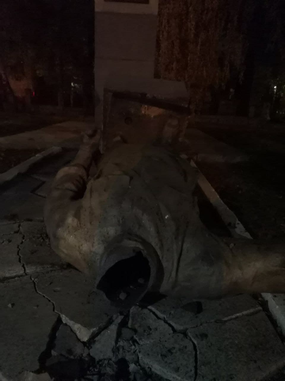 В ніч на вівторок невідомі скинули пам’ятник, фото з місця події в редакцію УП надіслав випадковий перехожий: