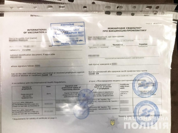 Деталі: Як встановили правоохоронці, схему виготовлення підроблених сертифікатів організувала 52-річна власниця туристичного агентства. Вона пропонувала клієнтам придбати сертифікат без проходження вакцинації.