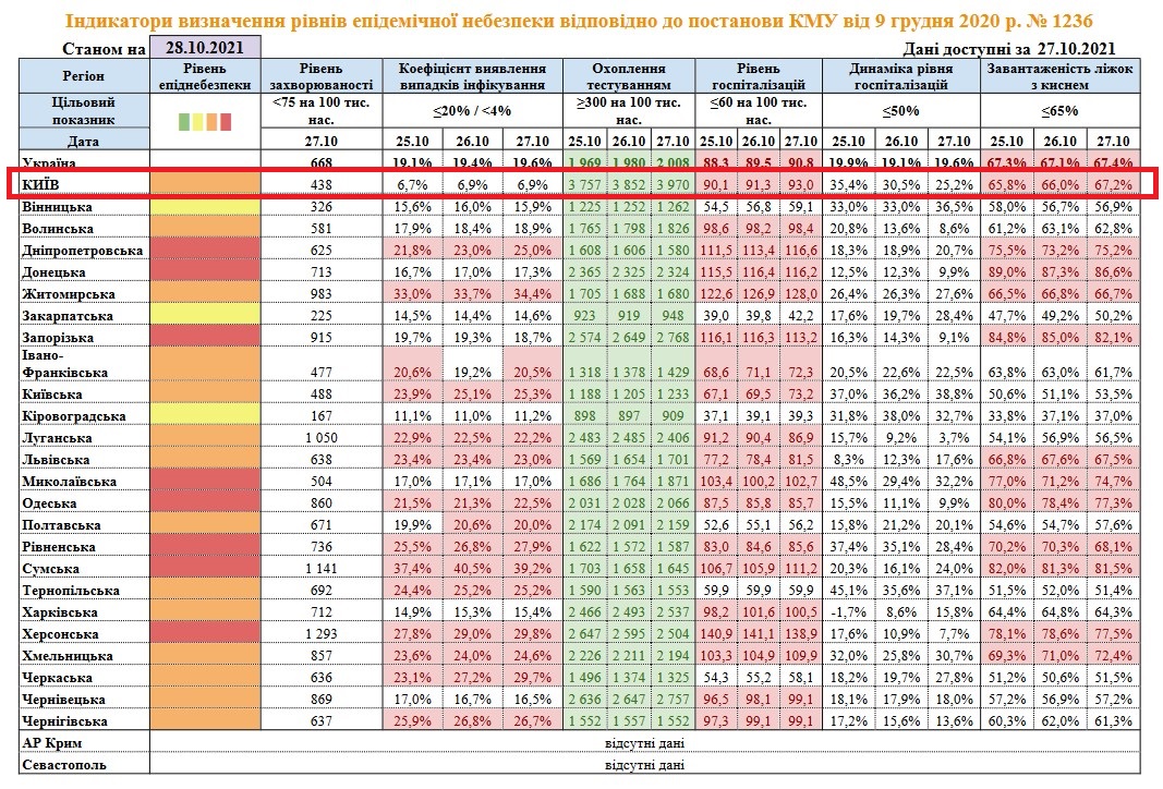 У столиці показники госпіталізацій із коронавірусом і завантаженості ліжок з киснем уже три дні перевищують допустимі значення, а це – ознака для оголошення міста зоною з "червоним" рівнем епідемічної небезпеки.