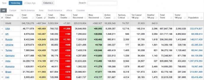 28 жовтня у світі виявили 467 944 нові COVID-випадки.