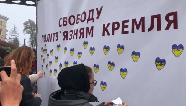 Після завершення акції учасники приклеїли паперові сердечка з іменами незаконно утримуваних Російською Федерацією на стіну з написом "Свободу політв’язням Кремля".