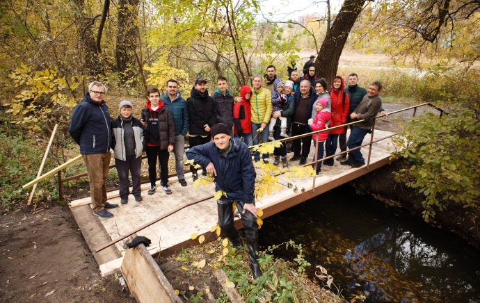 Спільними зусиллями ми зібрали чимало мішків сміття, розчистили розмив, відремонтували місток і висадили 1500 цибулин різноманітних квітів.