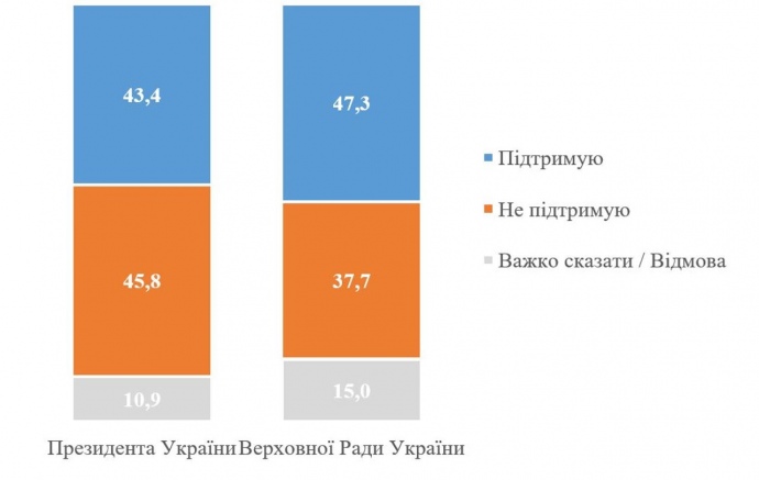 Водночас, у випадку дострокових президентських виборів думки розділилися майже порівну – 43,4% підтримують їх проти 45,8%, які не підтримують".